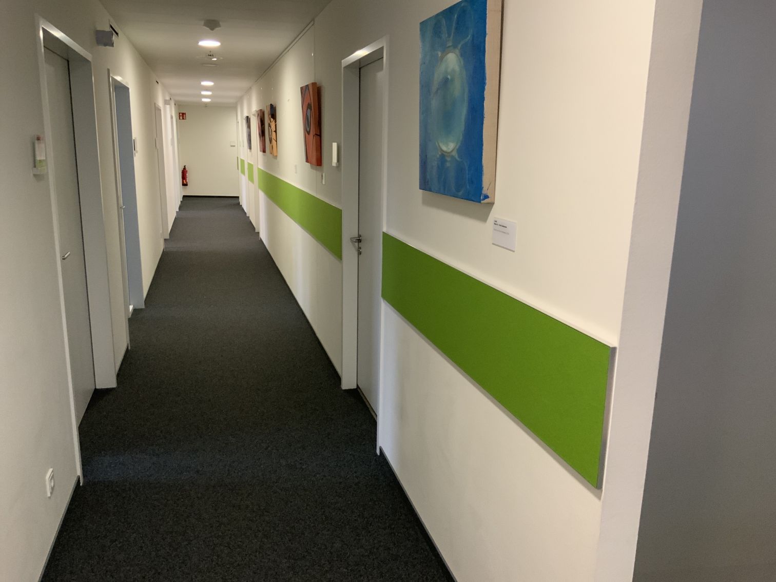 Teppichboden mit textilen Wandstreifen in einem Bürogebäude
